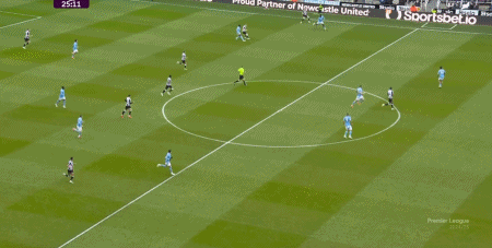 第25分钟,霍尔低传门前造成变线,墨菲门前轻松撞射破门,纽卡2-1。